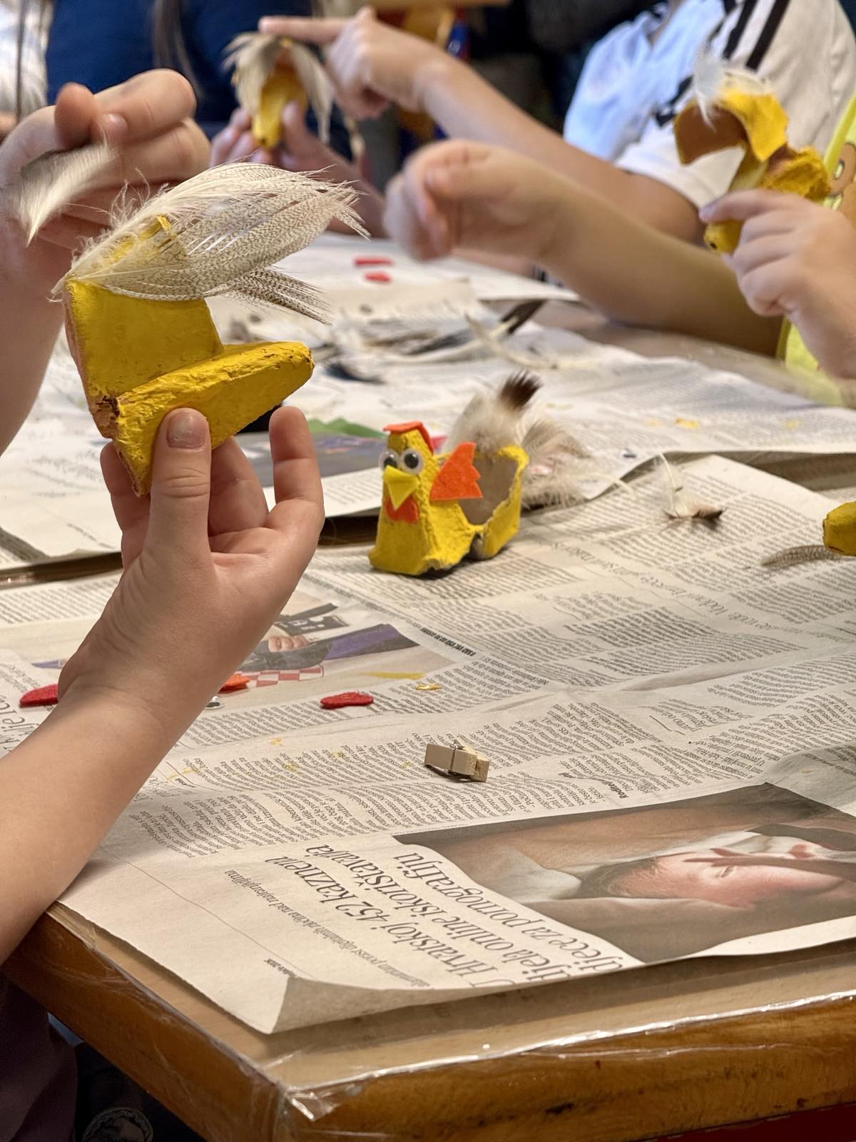 Mališani su izrađivali vesele uskrsne pjetliće koristeći reciklirane materijale poput kartonskih kutija za jaja, papira i perja. Kroz igru i boje otkrivali su kako se jednostavni predmeti iz kućanstva mogu pretvoriti u nešto novo i maštovito. Ovakve aktivnosti djeci na prirodan način pokazuju da se otpad može iskoristiti kreativno i da briga o okolišu počinje od najranije dobi.